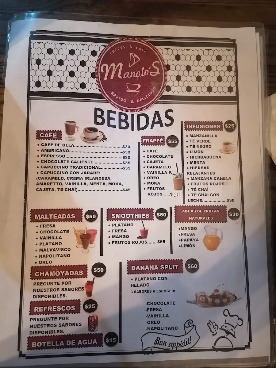 Welcome to Manolo's Crêpes & Café, a delightful gem located in Ecatepec, Mexico. This cozy café specializes in creating scrumptious crêpes that tantalize the taste buds. The atmosphere is both spacious and inviting, making it an ideal spot for relaxation and conversation.